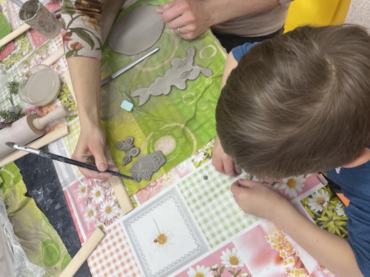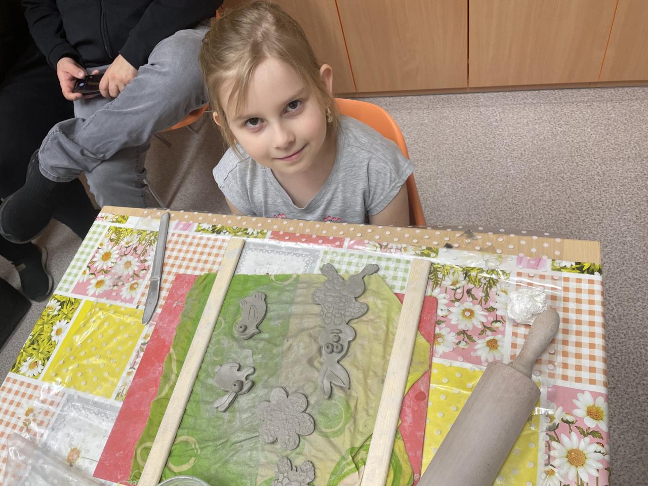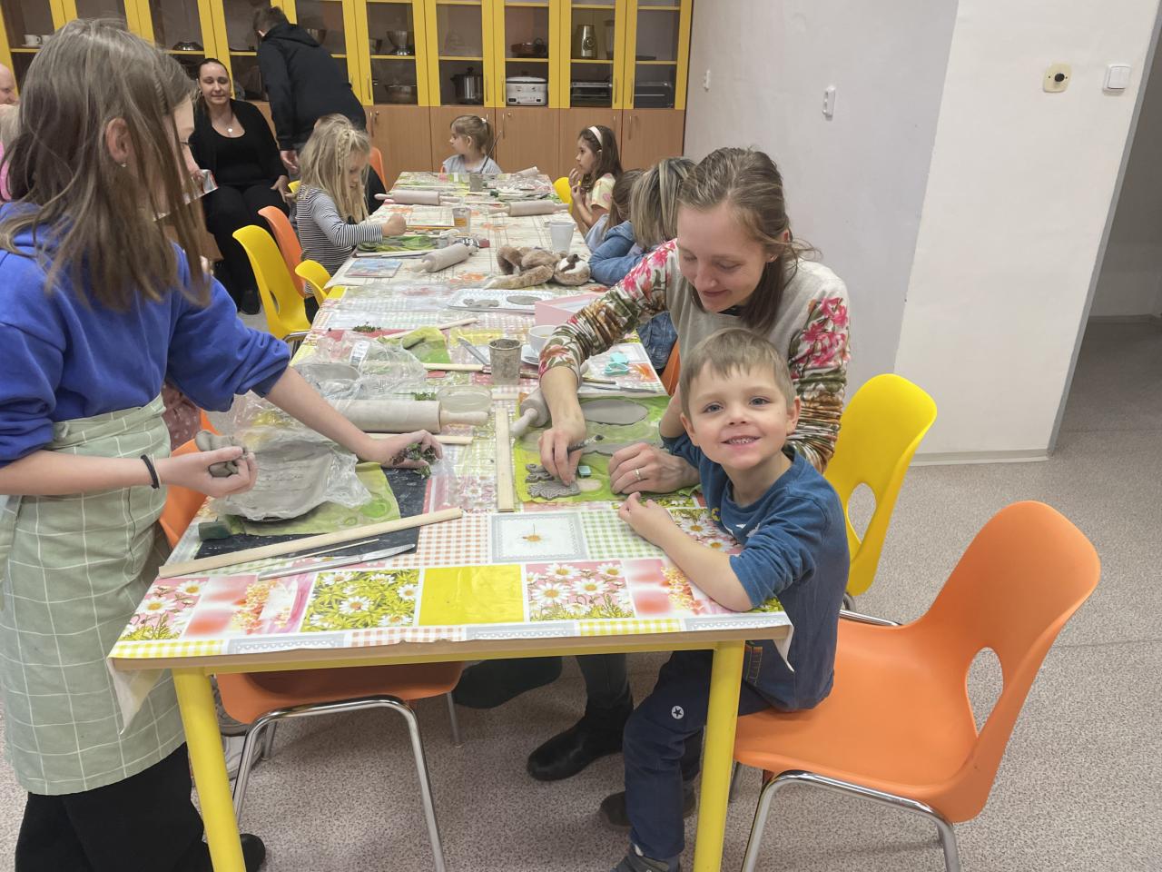 Pod vedením paní Kláry Strnadlové, která nás zasvětila do všech tajů a úskalí práce s keramickou hlínou, vznikala originální umělecká díla s jarní tematikou. Zajíčci, motýlci a kytičky dostanou po cca třídýdenním vysušení a následném vypálení v keramické peci špejli a budou zdobit květináče v našich domovech. Větší děti se pustily i do výroby misek či tácků.