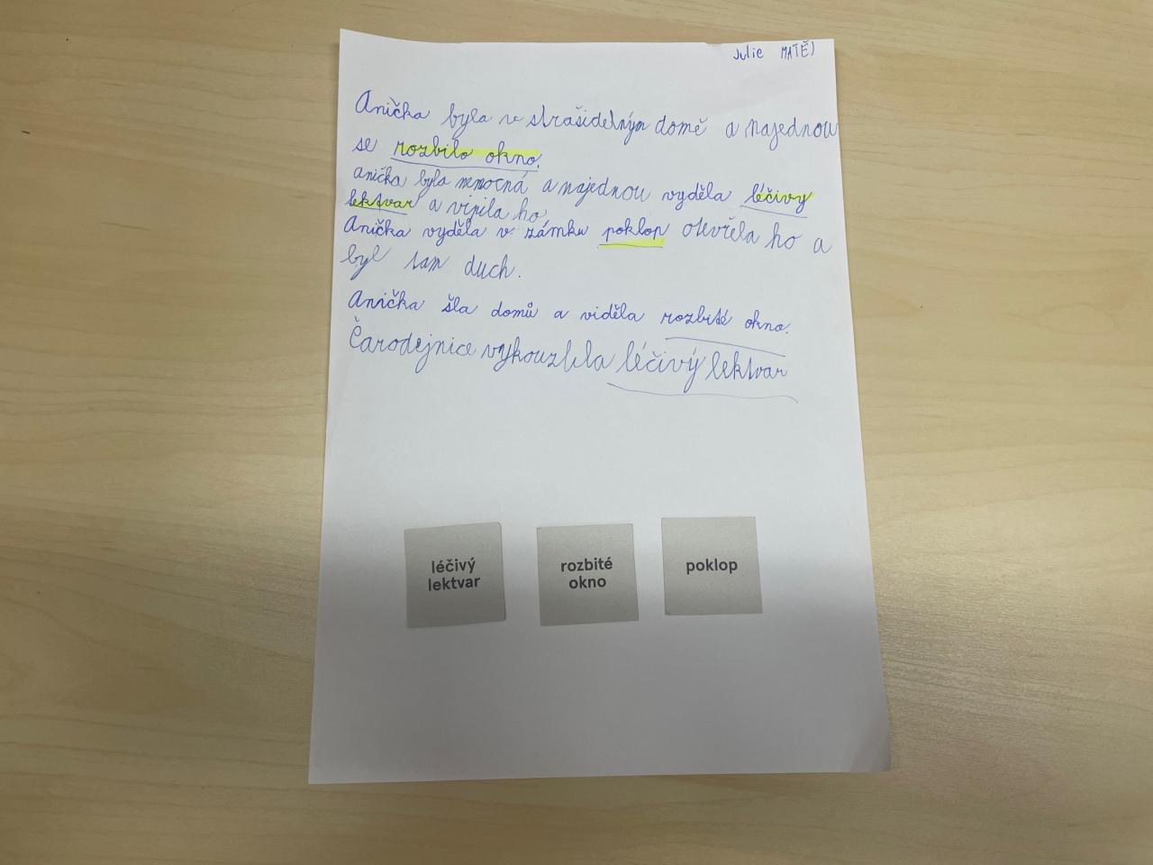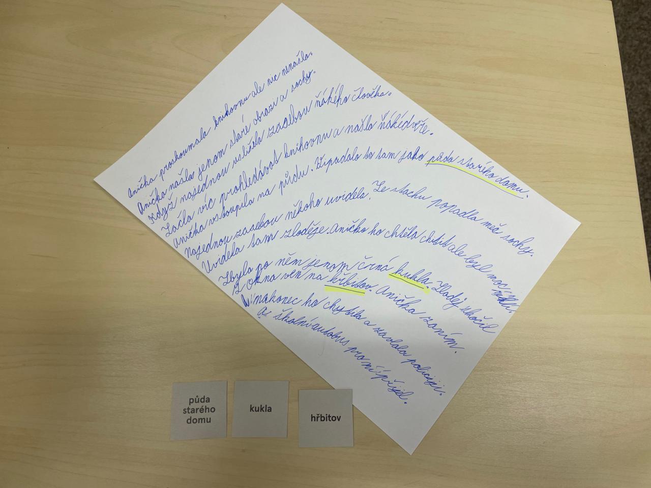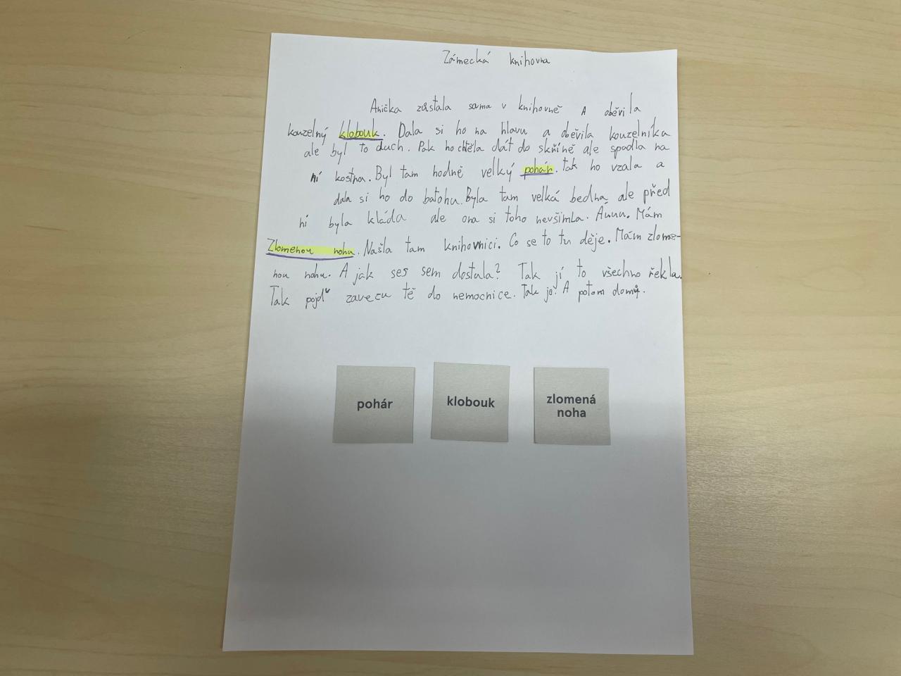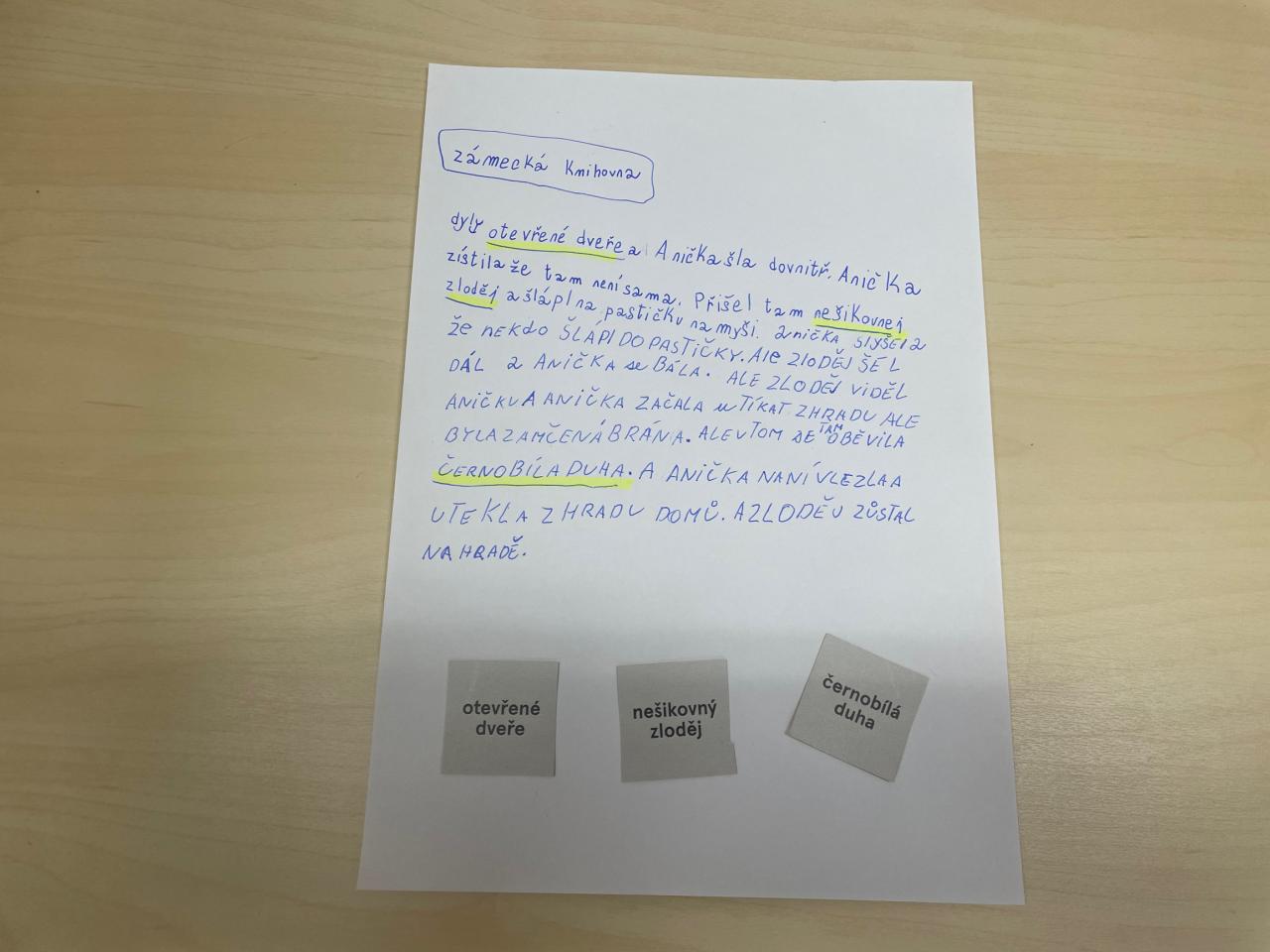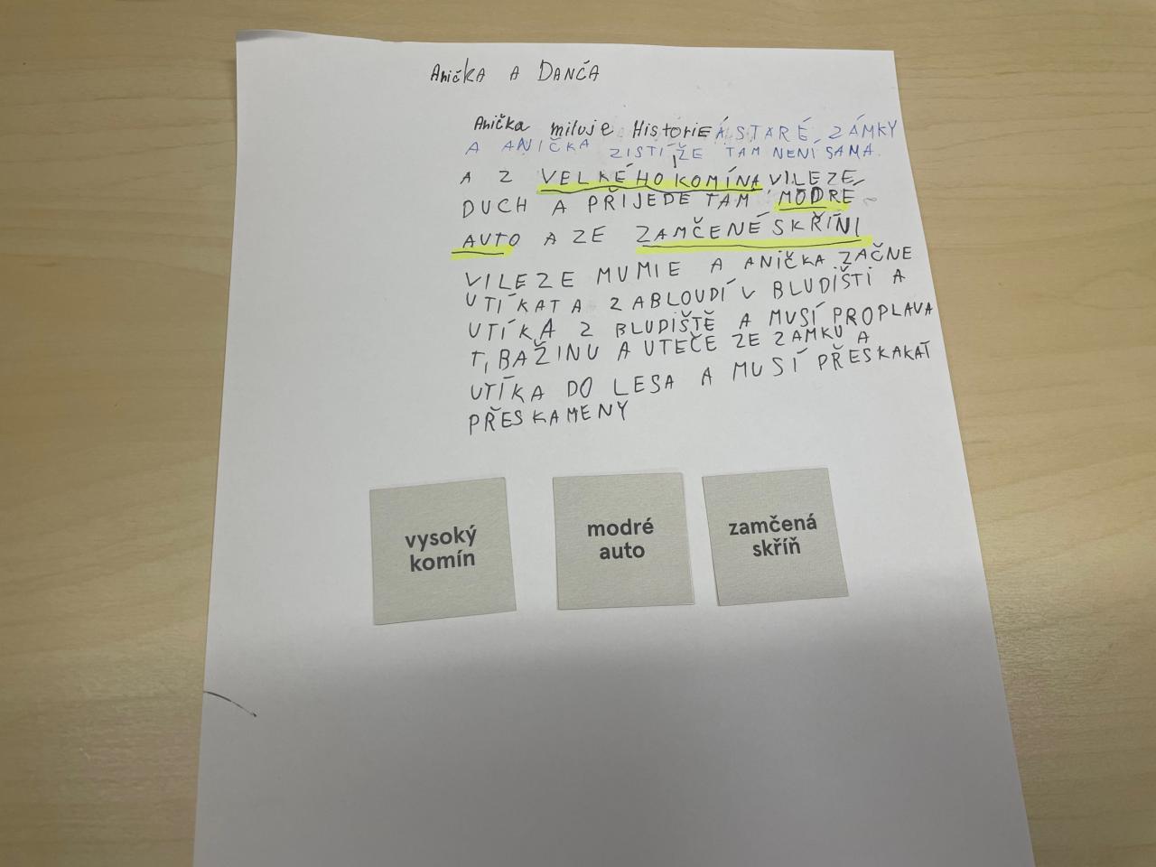 Tato publikace hravou formou navozuje 45 nevšedních situací, v nichž na vypravěče a vypravěčky čeká řada příběhových nástrah. Děti si ke svému dokončení vybraly příběh Zámecká knihovna, který ve dvoučlenných skupinkách dokončily. Výsledné příběhy hýřily zajímavými autorskými nápady, protože při jejich vymýšlení si každý vylosoval náhodná tři slova, která v příběhu musela figurovat.