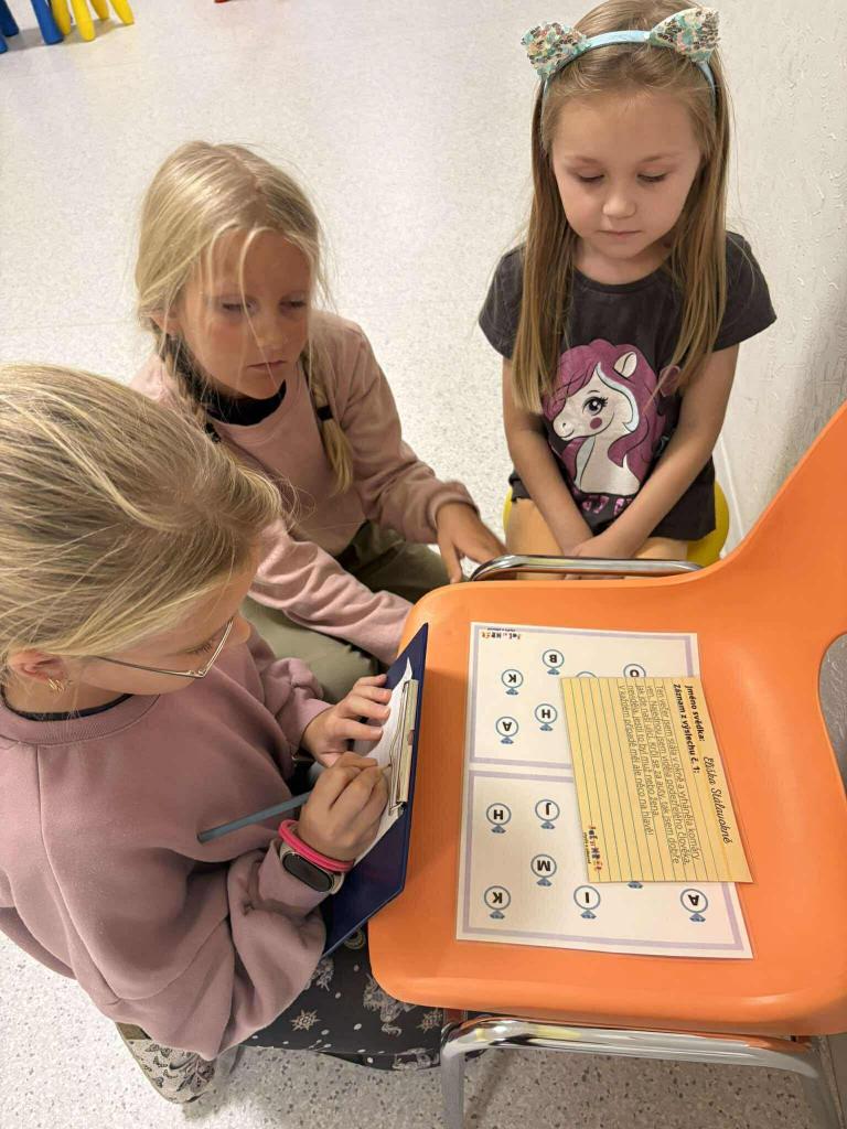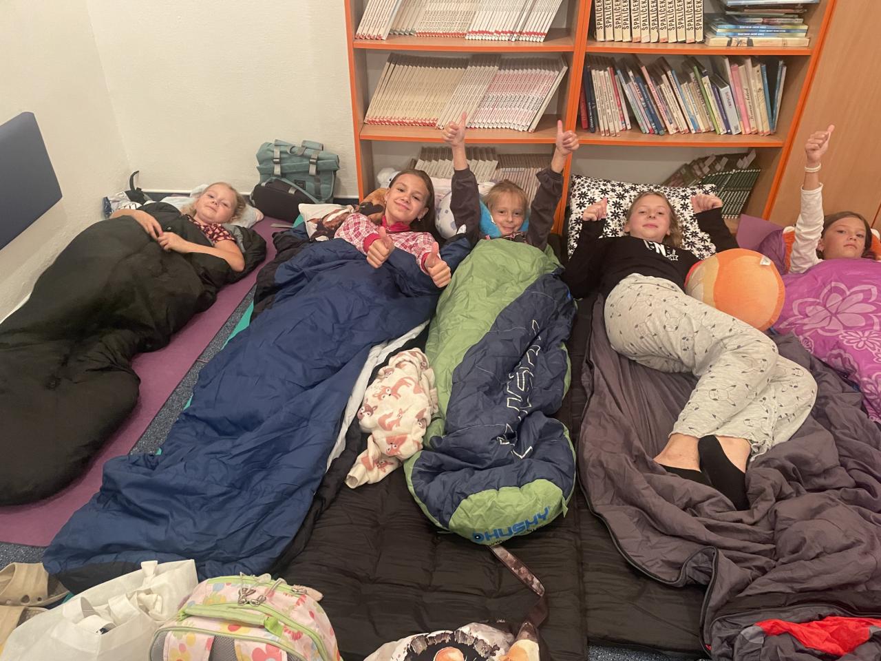 Čekal nás nabitý večer plný překvapení. A protože i mezi dívkami jsou v oblibě knihy s detektivní zápletkou, začali jsme dobrodružnou hrou Velké pátrání, při kterém děvčata hledala neznámého zločince, jež vyloupil zlatnictví. Následovalo zábavné Knižní bingo s šestnácti otázkami a pak přišel čas na večeři. Děvčata si připravila tortilly a tousty a z dobré nálady je nevyvedla ani porucha elektřiny ve školní kuchyňce. Po jídle na nás čekalo originální pexeso VEČERNÍČEK, které právě tyto dívky vytvořily v rámci příměstského tábora. Vyzkoušely jsme si i novou hru PUKEC a Picmochu, nezlob se! Mezi jednotlivými hrami si holky měly možnost vytvořit knižní záložku. Na spaní jsme se s laskavým svolením ZŠ Všechovice umístily do školní čítárny, kde jsme za svitu okenních světýlek všechny sladce usnuly...