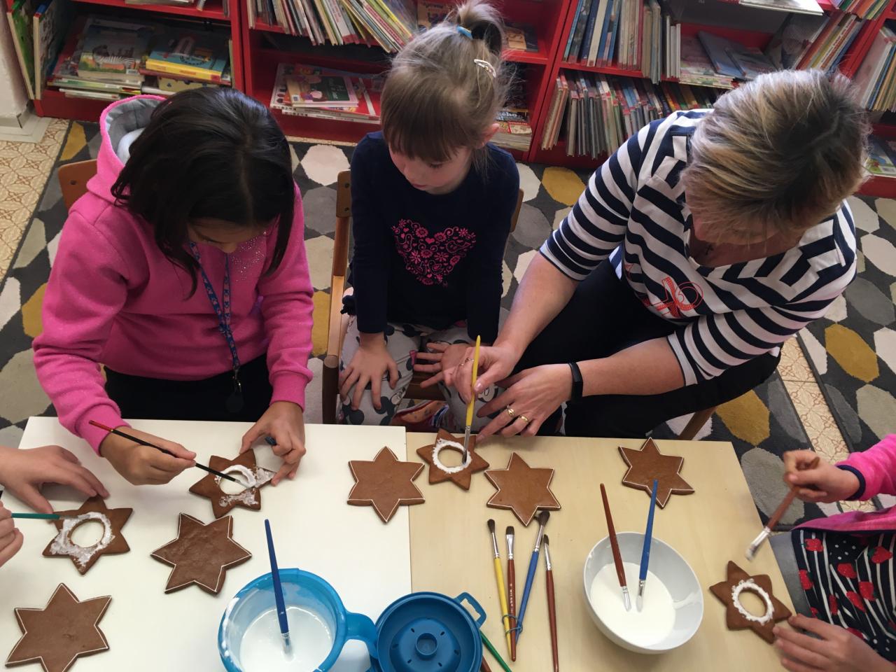 Projektový den byl připraven pro členy školního Čtenářského klubu na odpolední hodiny úterka 16. listopadu 2021. Zaměřili jsme se na bližší poznání předvánočního období - adventu a vánoční tradice. Přečetli jsme si knihu Vánoční tramvaj od námi známé spisovatelky Daniely Krolupperové, která v letošním roce navštívila naši knihovnu. Další aktivitou byla hra Vánoční lov - v knihovně byly rozmístěny kartičky s písmeny a děti měly do připravených pracovních listů zaznamenat slova začínající na to dané písmeno, spojená s Vánocemi či adventem. Hlavní částí akce však bylo vyrobení perníkového svícnu a jeho pečlivé nazdobení cukrovým sněhem. Všechny vzniklé svícny byly malými uměleckými díly, které si děti odnesly s sebou domů. Vůně perníku se linula knihovnou však ještě několik dnů. Za spolupráci opět děkuji učitelkám ze zdejší ZŠ Marii Voldánové a Žanetě Suchánkové.